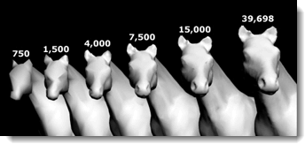 附註:所有的四角形網格面都可以轉換為兩個三角形的網格面,但網格面數縮減後的兩個三角形網格面不一定可以再轉換為一個四角形網格面,所以在某些情形下,縮減後的網格面數有可能會比縮減前還多。
