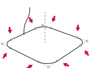 회전축 원점에서 회전축을 따라 경로 커브 시작점까지의 거리를 1차 참조 높이라고 하며, 회전축 원점에서 회전축을 따라 경로 커브의 제어점까지의 거리를 2차 참조 높이라고 합니다.