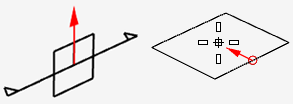 Die Dreiecke zeigen zur sichtbaren Seite der Zuschneideebene.