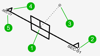 - Wählen Sie eine Kurve und anschließend den Mittelpunkt des Rechtecks auf der Kurve.