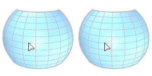 Wählen Sie die Start- und Endkanten in einem Bereich der Schleife (links) oder des Rings (rechts), basierend auf der Typ-Option zum Einsetzen von Kanten.