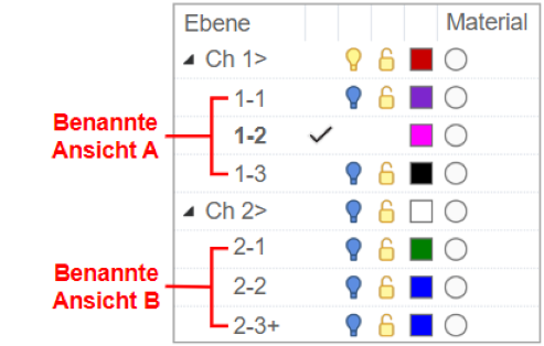 Bestimmt wie eine benannte Ansicht mit Ebenen assoziiert wird.
