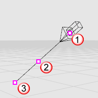 - Um das Licht ohne Änderung der Richtung zu verschieben, verschieben Sie den Dolly-Punkt (der Kontrollpunkt am Mittelpunkt im Richtungsvektor).