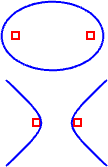 Mit dem Befehl BrennpunkteMarkieren werden Punktobjekte an den Brennpunkten von elliptischen, hyperbolischen und parabolischen Kurven gesetzt.