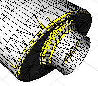 Mit dem Befehl PolygonnetzteilExtrahieren werden alle Seiten eines Polygonnetzes ausgehend von der ausgewählten Seite bis zur nächsten offenen oder unverschweißten Kante ausgewählt.
