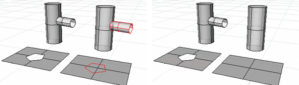 ② Alle Objekte werden als Schnittobjekte gewählt. Die Fläche und Rohre können einander zuschneiden.