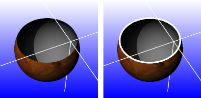 Wenn ein 3D-Objekt von einer Zuschneideebene geschnitten wird, ist der Schnitt gefüllt.