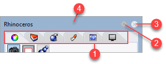 Reiter (1), Schaltfläche für Panelmenü (2), Schaltfläche zum Schließen (3), Titelleiste (4).