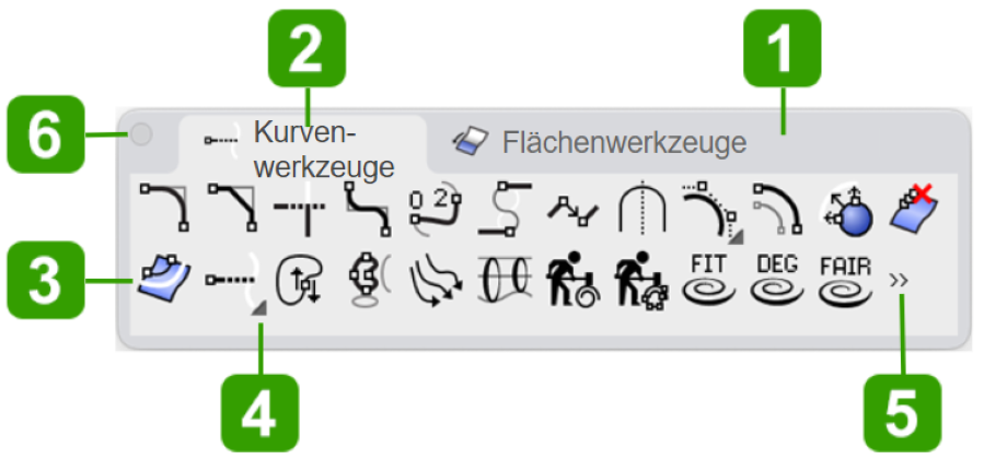 "Seitenleiste" ist ein spezieller Container, der einen vorhandenen Container entsprechend des derzeit aktiven Werkzeugleistenreiters anzeigt. Wenn Sie im Standard-Arbeitsraum auf den Reiter der Kurvenwerkzeuge klicken, wird der Container Kurvenzeichnung-Seitenleiste in der Seitenleiste angezeigt.