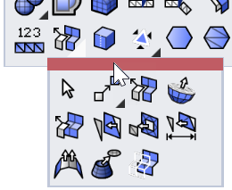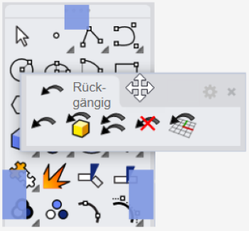 Wenn eine Werkzeugleiste mit einer Schaltfläche verknüpft ist, zeigt die Schaltfläche ein schwarzes Dreieck in der rechten unteren Ecke an. Die verknüpfte Werkzeugleiste wird als ausklappbare Werkzeugleiste geöffnet.