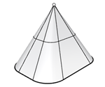 The ExtrudeCrvToPoint command creates a surface by tracing the path of a curve tapering to converge at a selected point.