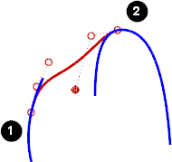 El comando CrvDeMezcla crea una curva de mezcla entre curvas y/o bordes de superficie con control sobre la continuidad con las curvas de entrada.