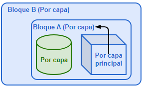 Esta opción solo sirve cuando se crean objetos en bloques. Piense en una referencia de bloque como un contenedor que contiene objetos (miembros de bloque). Una referencia de bloque es el objeto principal de sus miembros de bloque. Una referencia de bloque tiene sus propiedades particulares. Si selecciona Por objeto principal en las propiedades de un miembro de bloque, las propiedades las controlará la referencia de bloque.