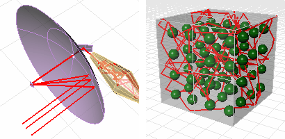 El comando Rebotar proyecta un rayo en un grupo de superficies para crear una trayectoria de polilínea.