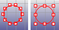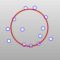 Dibuja un círculo ajustándolo a puntos seleccionados, puntos de control de curvas y superficies, y vértices de malla. Pasos de la opción AjustarPuntos