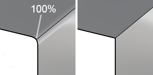 Pliegue suave con porcentaje de 100% (izquierda) y pliegue recto (derecha). -
