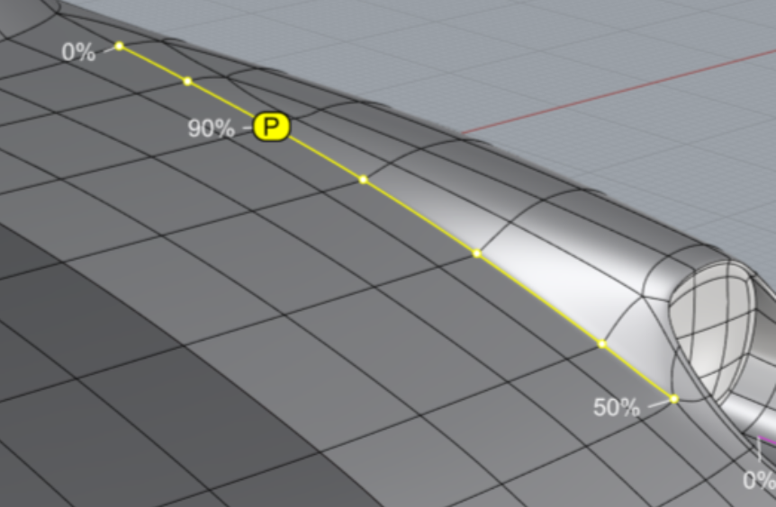El comando SelBordesSubD se puede utilizar para seleccionar todos los bordes de pliegue suave en las SubD seleccionadas para editarlos.
