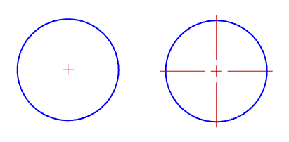 El comando MarcaCentral dibuja una cruz o bien una cruz y líneas centrales en el punto central una curva.