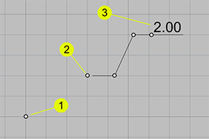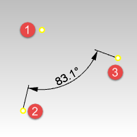 Designe el vértice del ángulo (1) y, a continuación, los puntos de cota (2) y (3). |