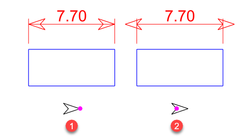 - Mueva el punto base (1) o el punto de cota (2) a una nueva ubicación.