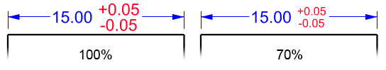 Muestra el Valor superior precedido por el signo + (más) y el Valor inferior precedido por el signo - (menos) en la línea de cota. Introducir un número negativo invierte la visualización de tolerancia de positivo a negativo y de negativo a positivo.