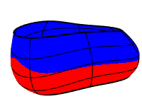 - Utilice una malla de análisis densa. Entonces los puntos pueden designarse por la banda dividiendo la parte roja de la parte azul de la superficie. La puntos estarán en la línea de corte.
