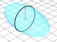 Dibuja la elipse base perpendicular al punto designado en una curva. El tercer eje será tangente a la curva.