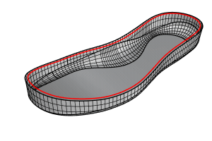 El comando EmpalmarSupEnCarril crea una superficie de mezca entre una superficie y una curva referenciando la curvatura de otra superficie.