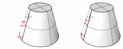 El comando ExtrusiónNormal extruye una curva de una superficie en la dirección de la normal de la superficie o tangente a la superficie.