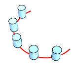 Indique círculos para definir un "tubo" de influencia alrededor de la curva de entrada. Fluye todo lo que hay dentro del tubo. Fluye todo lo que hay fuera del tubo. Dentro de la pared del tubo el efecto del comando fluir desparece gradualmente.