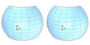 El comando InsertarBorde inserta bordes al lado de un bucle de bordes (izquierda) o a través de un anillo de bordes (derecha) en una SubD o malla.