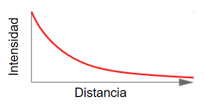 La intensidad de la luz disminuye con Ley de la inversa del cuadrado (1/d2).