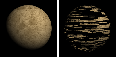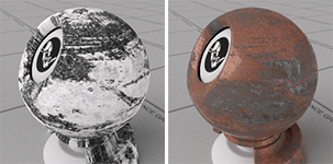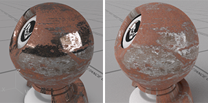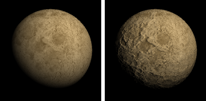 Los parámetros de Relieve/Normal y Desplazamiento utilizan texturas para añadir detalles a la superficie de un objeto.