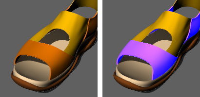 Cuando el objeto seleccionado tiene materiales asignados a subcaras: