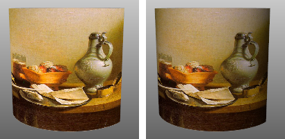 Dos cilindros planos (derecha) que utilizan un material metálico con/sin el mapa de normal (izquierda).