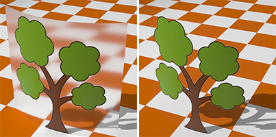 Cambia la visibilidad del objeto. Si se reduce el valor Alfa, también se reduce el efecto de refracción.