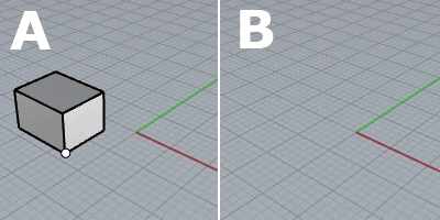 - El punto base del modelo no tiene efecto en el modelo actual. Es un punto de referencia que solo se utiliza cuando el modelo se importa o se inserta en otro modelo de Rhino.