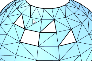 El comando ParcheConCara rellena un agujero de malla con una sola cara de malla. Se creará una cara de malla cuando se seleccionen suficientes bordes o vértices.