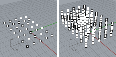 El comando RejillaDePuntos dibuja una rejilla rectangular de puntos o una matriz 3D de puntos.