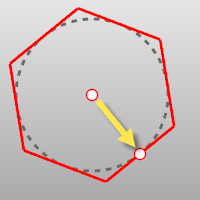 Crea un polígono cuyos puntos medios de los lados tocan un círculo imaginario de un radio específico. Pasos de la opción Circunscrito