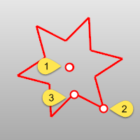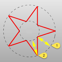 AutomáticaSi el polígono tiene 5 o más lados, la opción Automático crea una estrella donde el tamaño de los puntos interior y exteriores sea igual. Véase: Wikipedia: Estrella (figura geométrica). ![]() Las distancias 1 y 2 son iguales. |