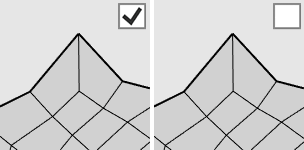 Desactivar: los vértices de la malla cuadrangular se utilizan como puntos de polígonos de control de SubD. El resultado será ligeramente más pequeño o más grande que la forma de entrada.