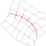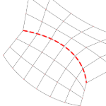 El algoritmo de remallado cuadrangular intentará colocar bucles de borde o anillos de borde a lo largo de las curvas guía. Las curvas guía se pueden utilizar para definir más detalles o simplemente para influir en la dirección del remallado cuadrangular de una zona. Las curvas guía deben proyectarse sobre el objeto de entrada para que tengan efecto. Hacer clic para seleccionar las curvas de guía.