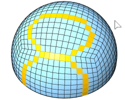 El comando SelCarasEnContorno selecciona caras de malla o SubD rodeadas de caras o de bordes seleccionados, o de ambos.