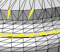 ExtraerCarasDeMallaPorRelaciónDeAspecto selecciona caras de malla que son muy largas en comparación con su anchura. Una relación de 25:1 o superior se considera largo.