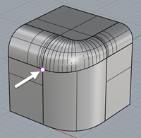 El comando PartirBorde divide bordes de superficie en las posiciones designadas.