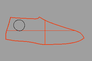 Suponga que quiere poner la marca “Rhino” en el círculo negro de este modelo NURBS 3D de una horma de zapato.