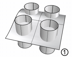 ② Todos los objetos se seleccionan como objetos de corte. La superficie y los tubos pueden recortarse entre sí.
