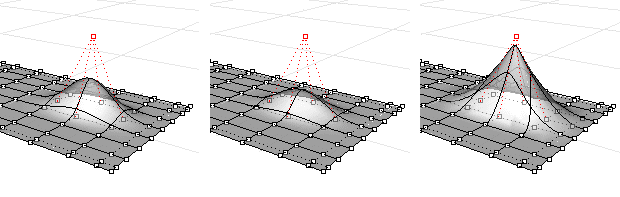 El peso de un punto de control determina cuánto atrae el punto de control a la curva o superficie. Cuanto más alto sea el valor del peso, más cerca estará la curva o superficie del punto de control.
