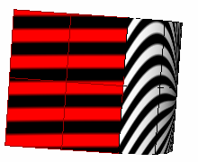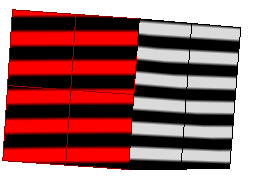 Si las rayas tienen puntos de torsión o saltan lateralmente al cruzar la conexión de una superficie a la siguiente, las superficies se tocan, pero tienen un punto de torsión o un pliegue en el punto donde el rayado de cebra es irregular. Esto indica continuidad G0 (sólo posición) entre las superficies.